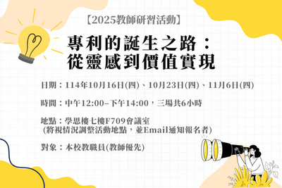 【產業研習】本校產學組辦理「專利的誕生之路:從靈感到價值實現」